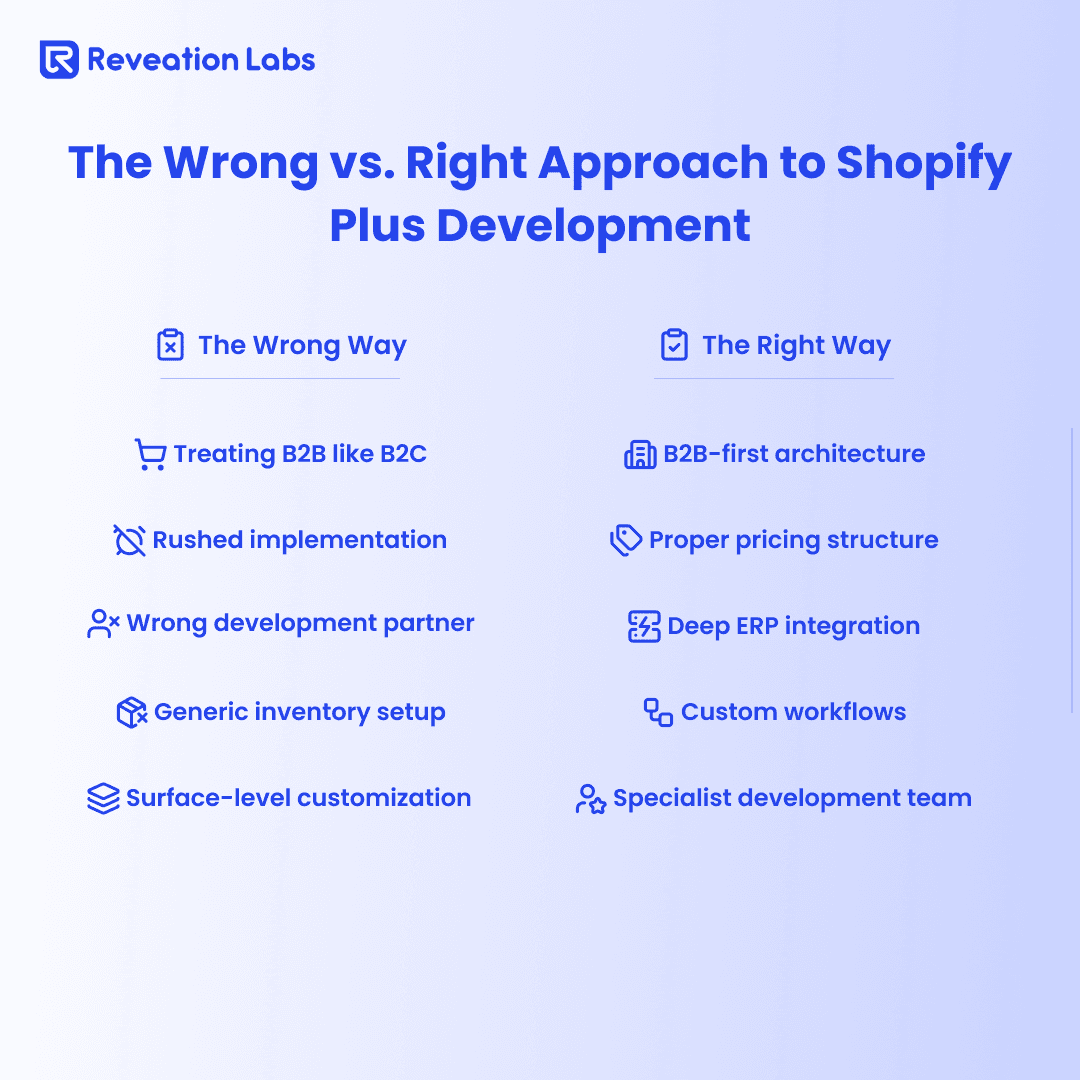 Every major complaint we researched traces back to implementation choices, not platform shortcomings. Companies that partner with B2B specialists who understand Shopify Plus Development get dramatically different results.
