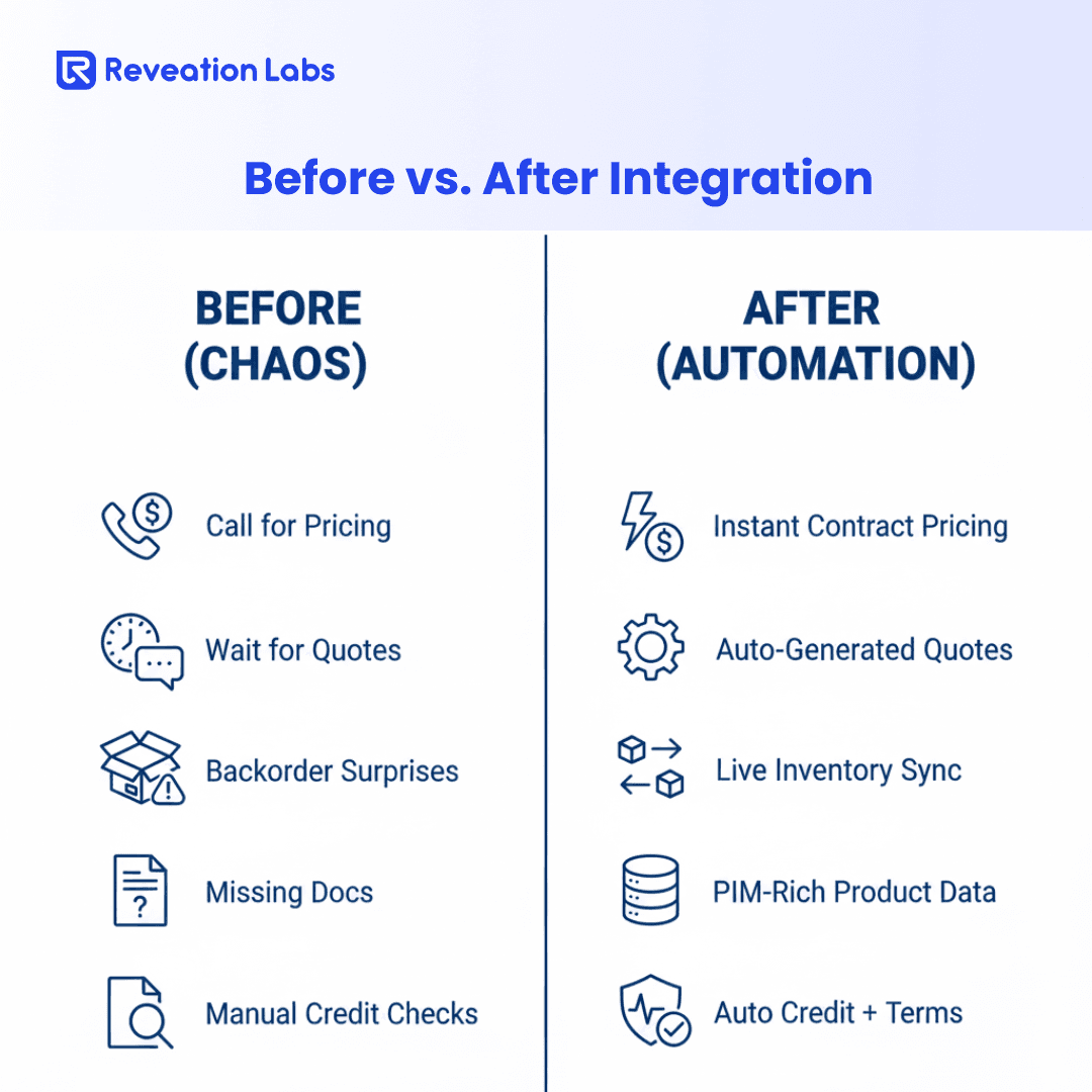 We see this disconnect constantly at Reveation Labs. Businesses come to us with bleeding margins and exhausted sales teams, unaware that the root cause is a superficial approach to B2B ecommerce integration.