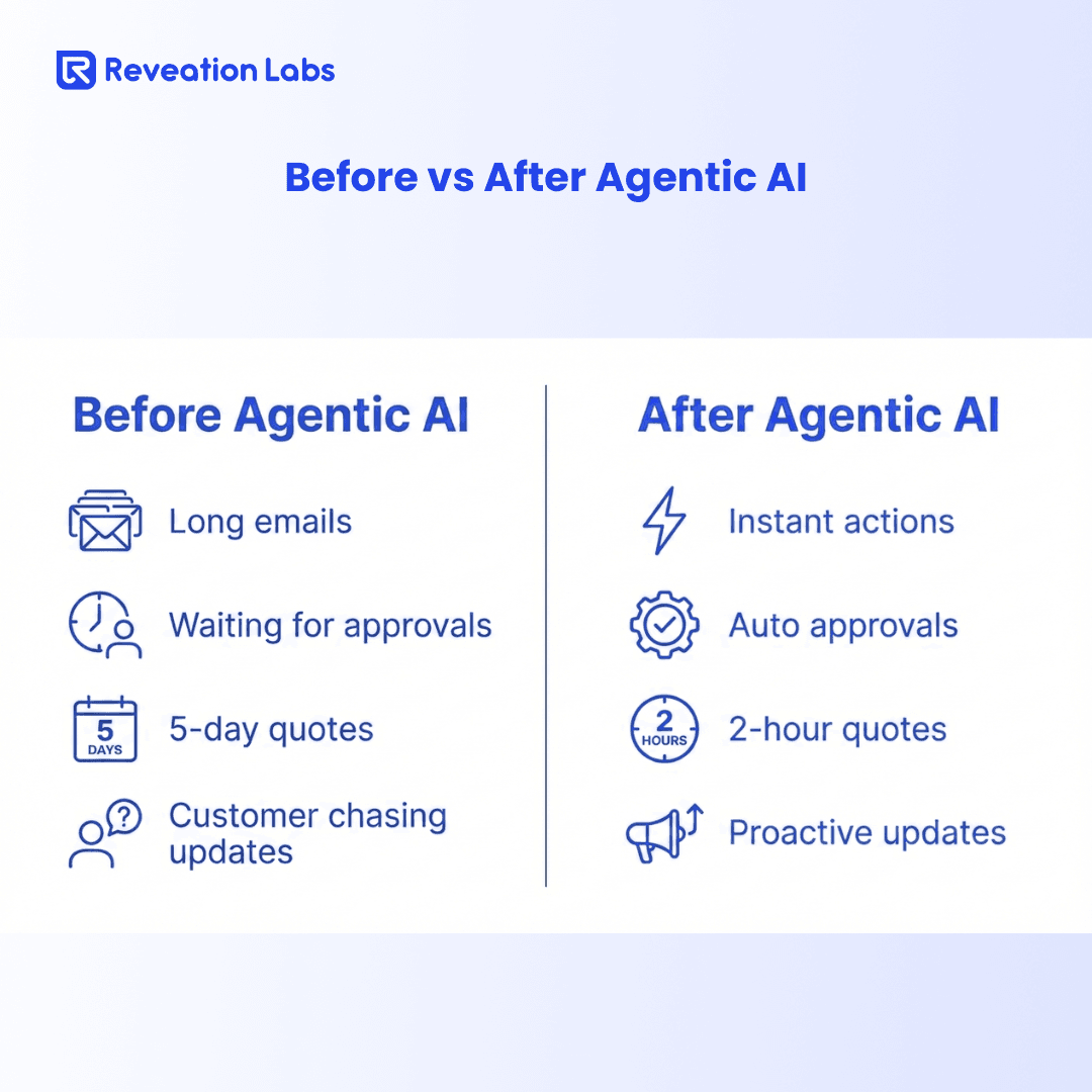 These agents adjust pricing in real-time. They respond to RFPs automatically. They generate contracts on demand.