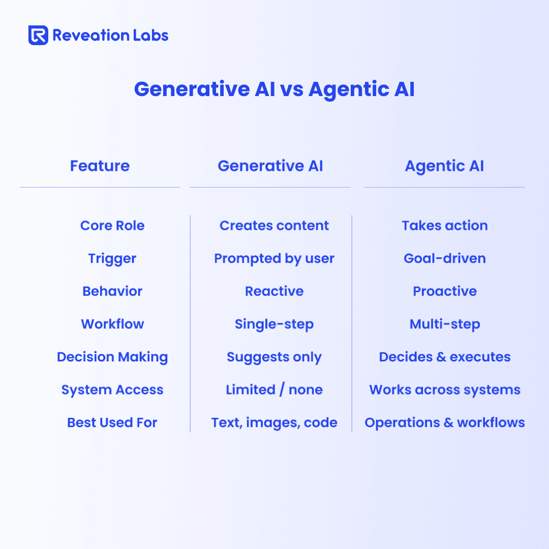 Simple rule: If a human must decide every next step, you want Generative AI. If the workflow has clear rules and crosses systems, you want Agentic AI.