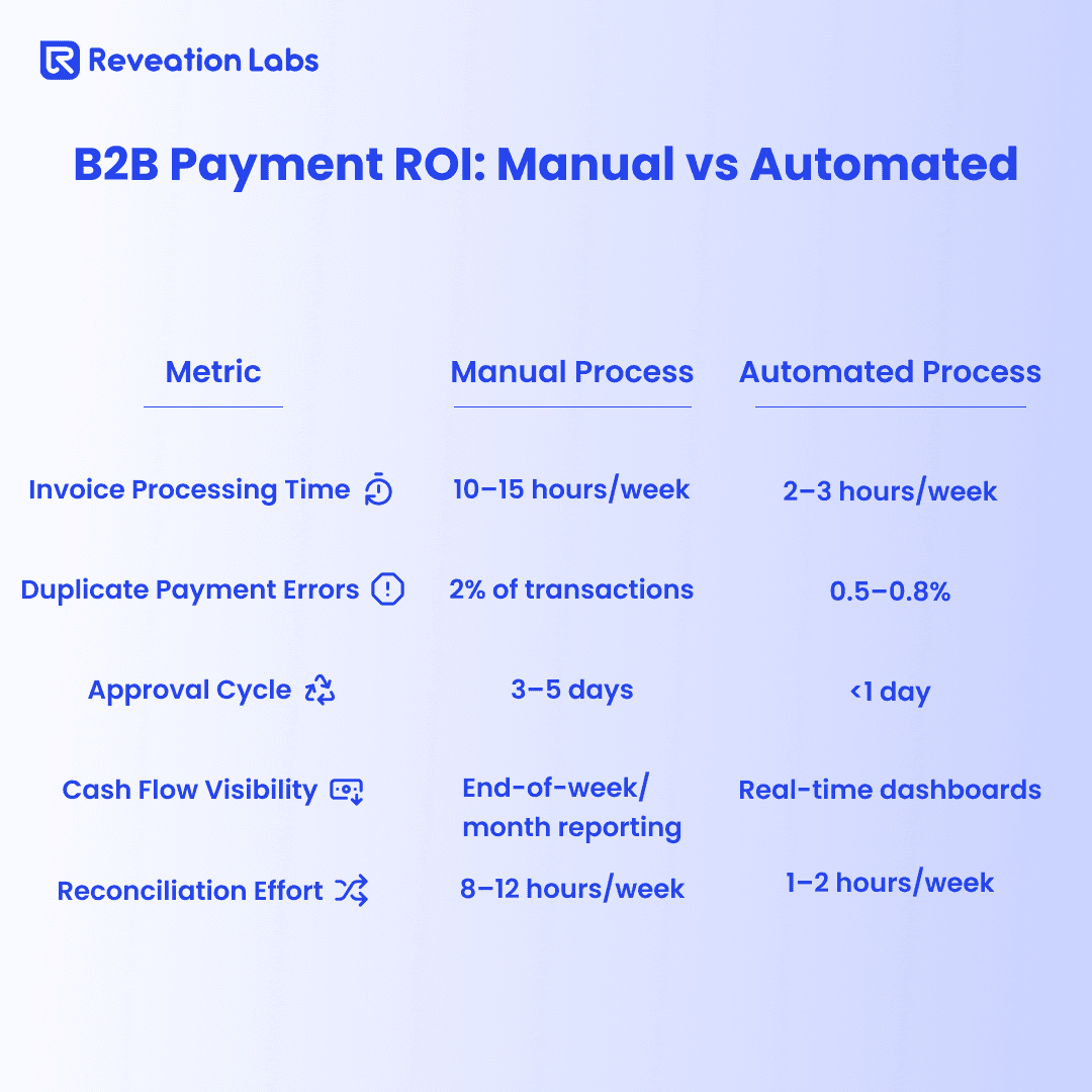 The visibility problem extends beyond just knowing your current balance. Without real-time b2b ecommerce payments data, strategic decisions get delayed while teams gather financial information manually. This slows down everything from equipment purchases to hiring decisions.