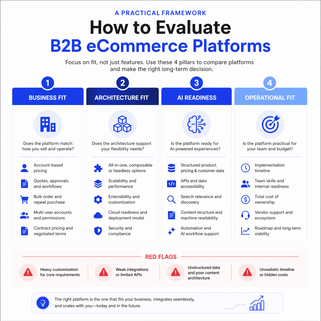 If you are evaluating B2B eCommerce platforms, start with our platform comparison framework to move forward with clarity.