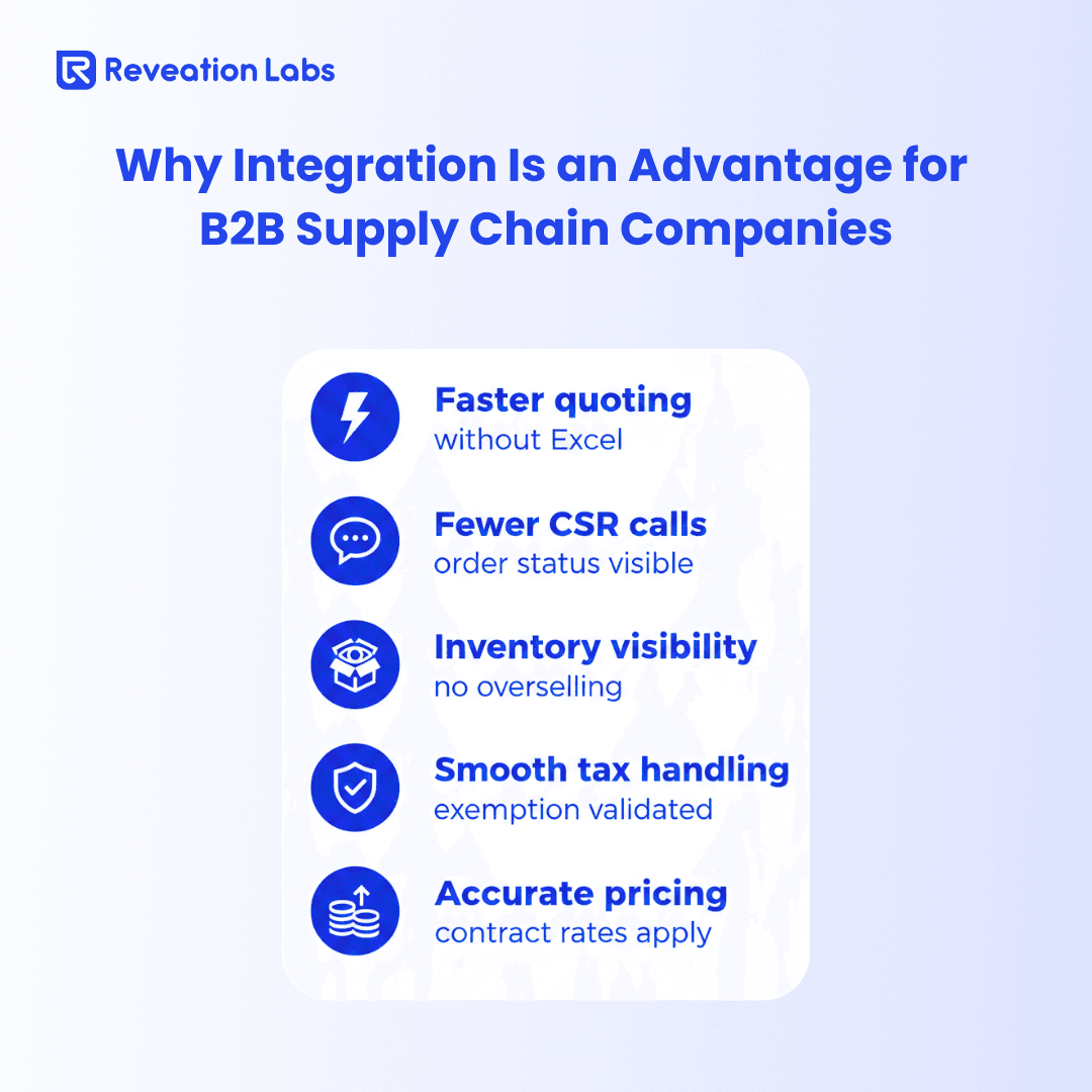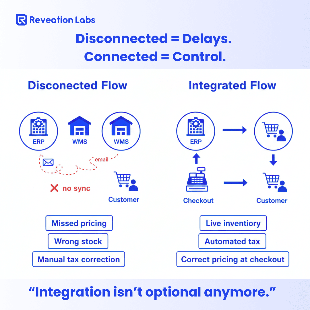 We've built these exact integrations at Reveation Labs for manufacturers and distributors tired of manual workarounds. The systems we connect don't just pass data back and forth.