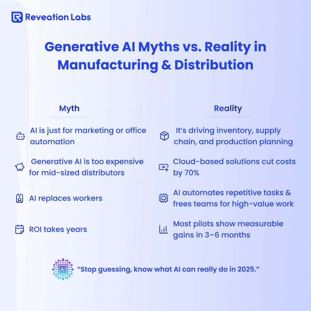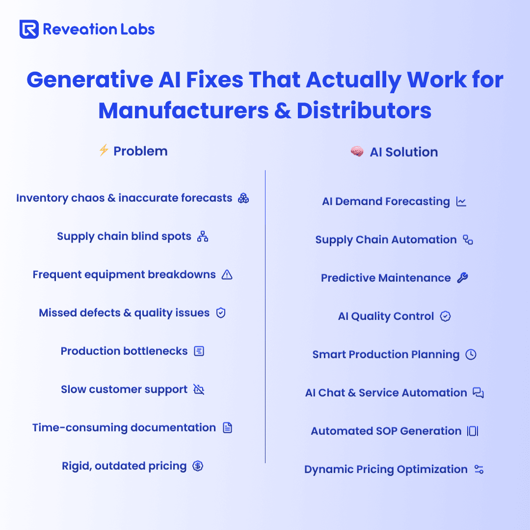 For companies ready to move beyond the research phase, we at Reveation Labs provide practical generative AI solutions designed specifically for manufacturing and distribution challenges.